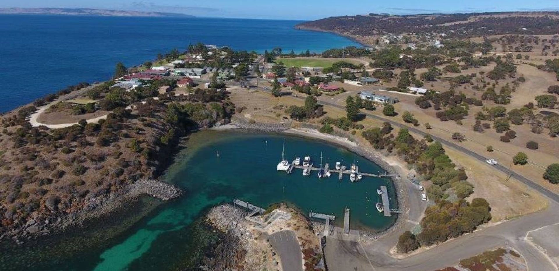 Christmas Cove on the western side of the Penneshaw town, has been converted into a small boat harbour .