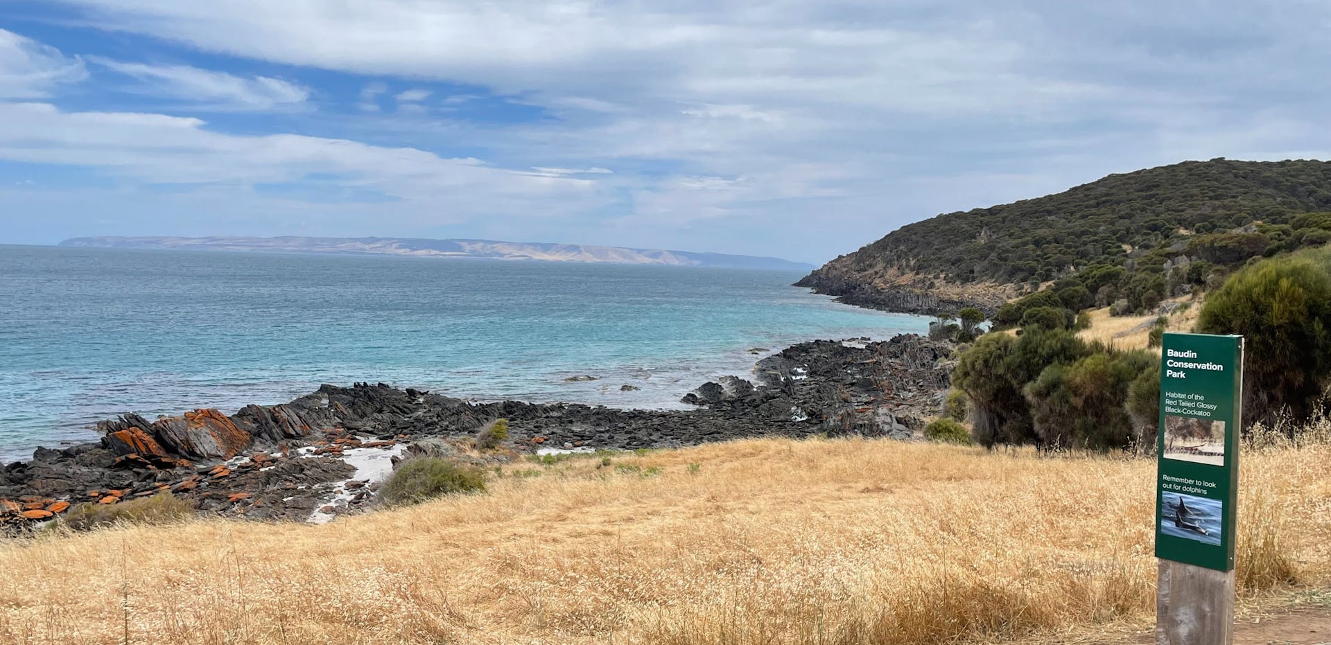 This hike follows the coast east of Penneshaw along a section of the original bullock track to Cape Willoughby and provides spectacular views across Backstairs Passage to the Fleurieu Peninsula. After climbing through regenerating sheoak vegetation, the hike leads to the ruins of Harry Bates’ cottage and a stone threshing floor on Ironstone Hill. The farming heritage of the area is interpreted on signs along the hike.