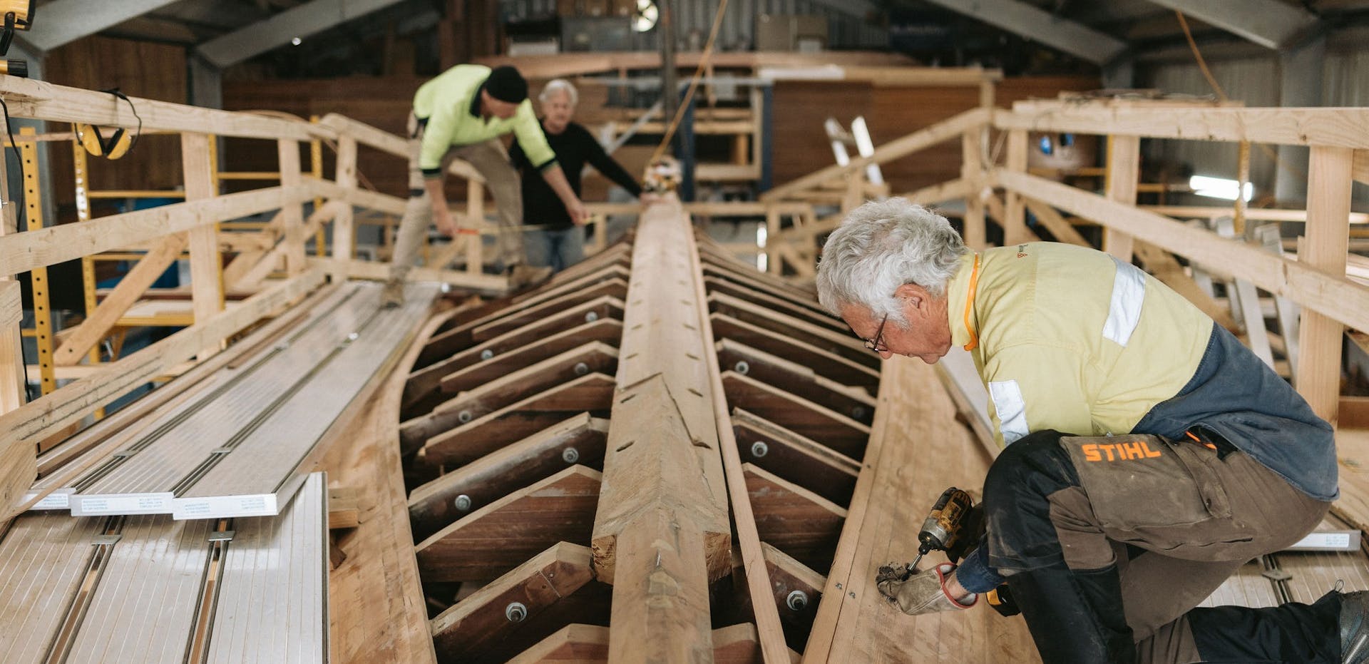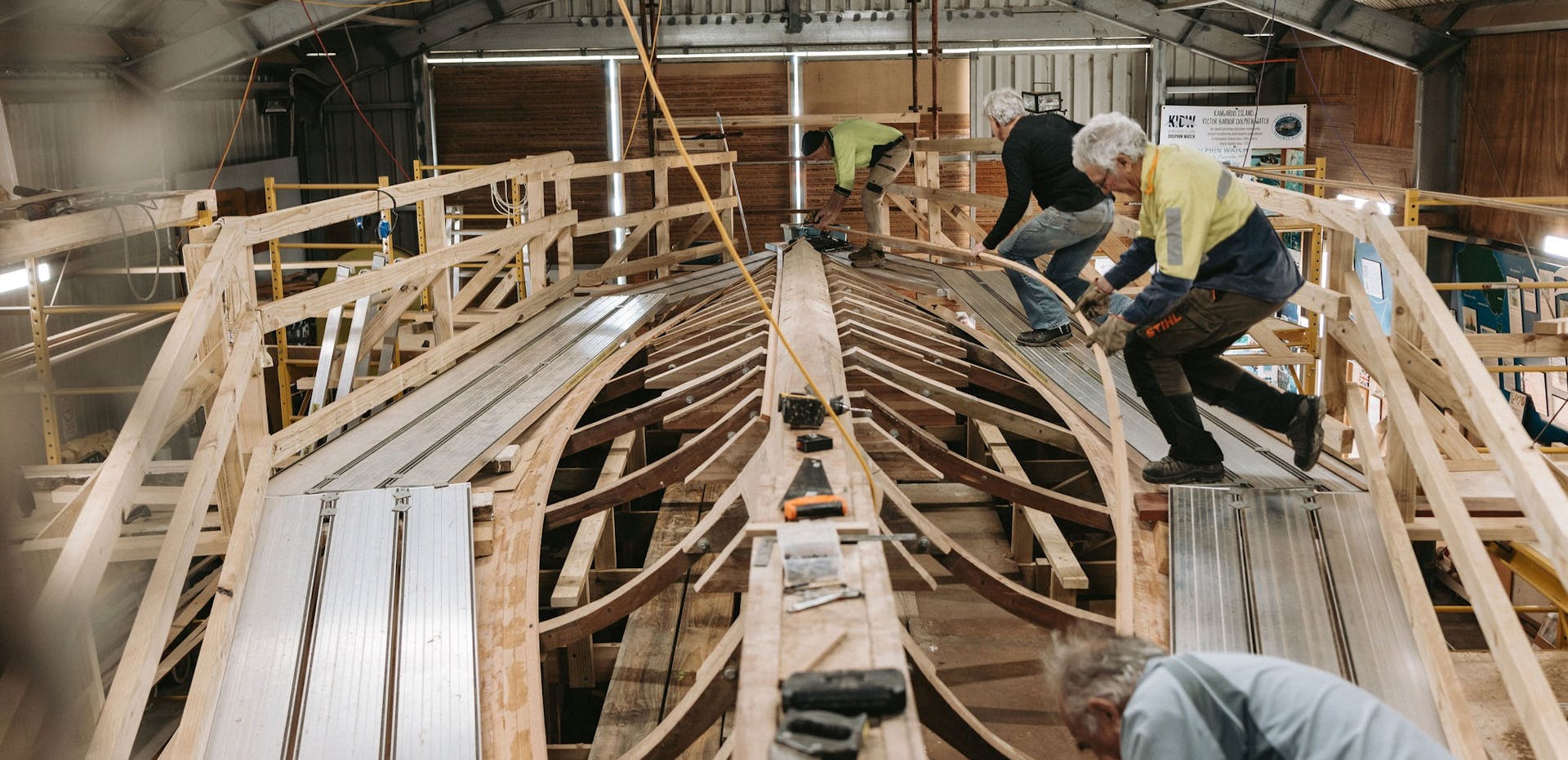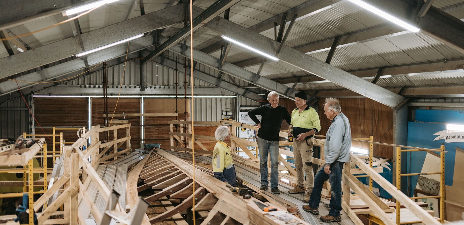 The vessel is being built entirely by voluntary labour and we estimate that we will need another three to five years to complete. Once finished visitors will be able to climb aboard and go for a short sail around the beautiful Eastern Cove and learn how these old sailing vessels were handled.