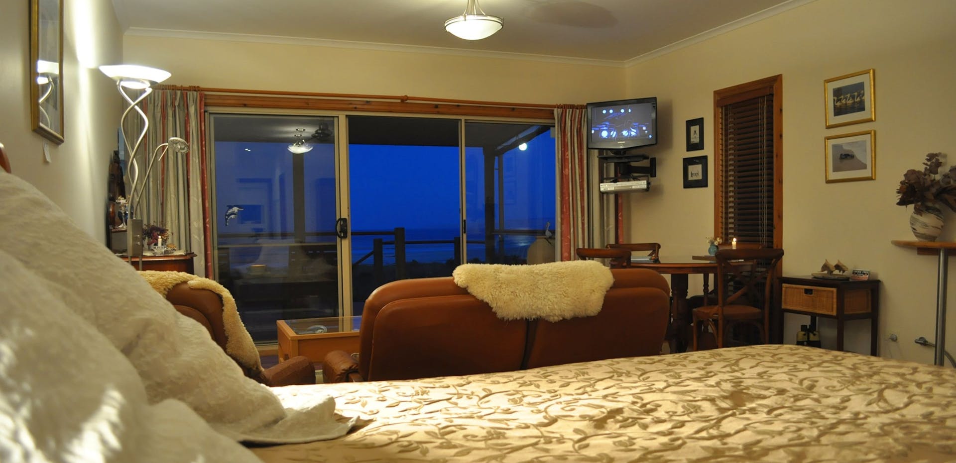 Adagio Retreat is a four and a half star rated accommodation with modern facilities in a peaceful romantic and natural beach setting, where panoramic views, bird life and nature abounds. Adagio is no longer a BnB and guests are required to self cater. There is 'kitchenette' with limited cooking facilities i.e a bbq, electric frypan , fridge and microwave