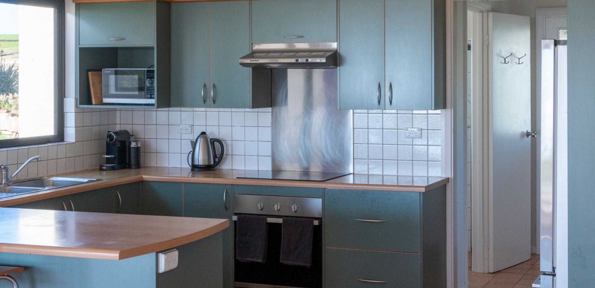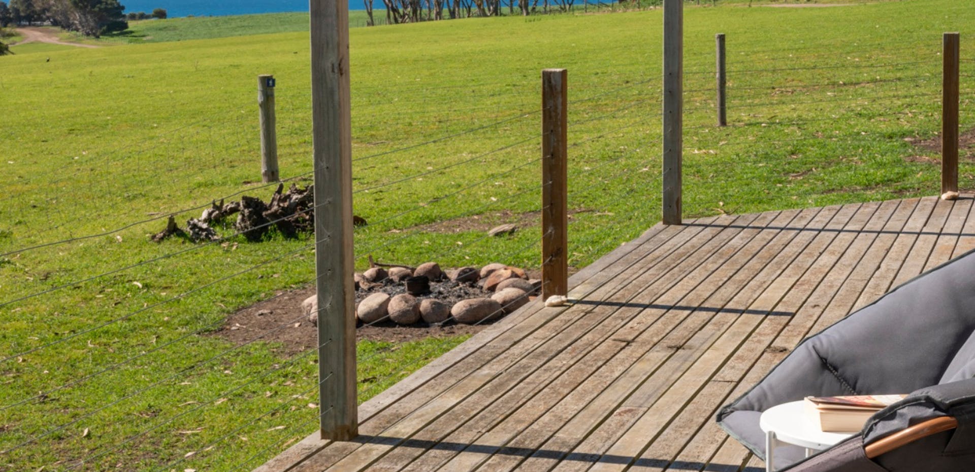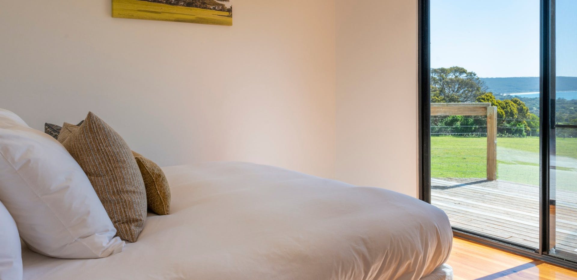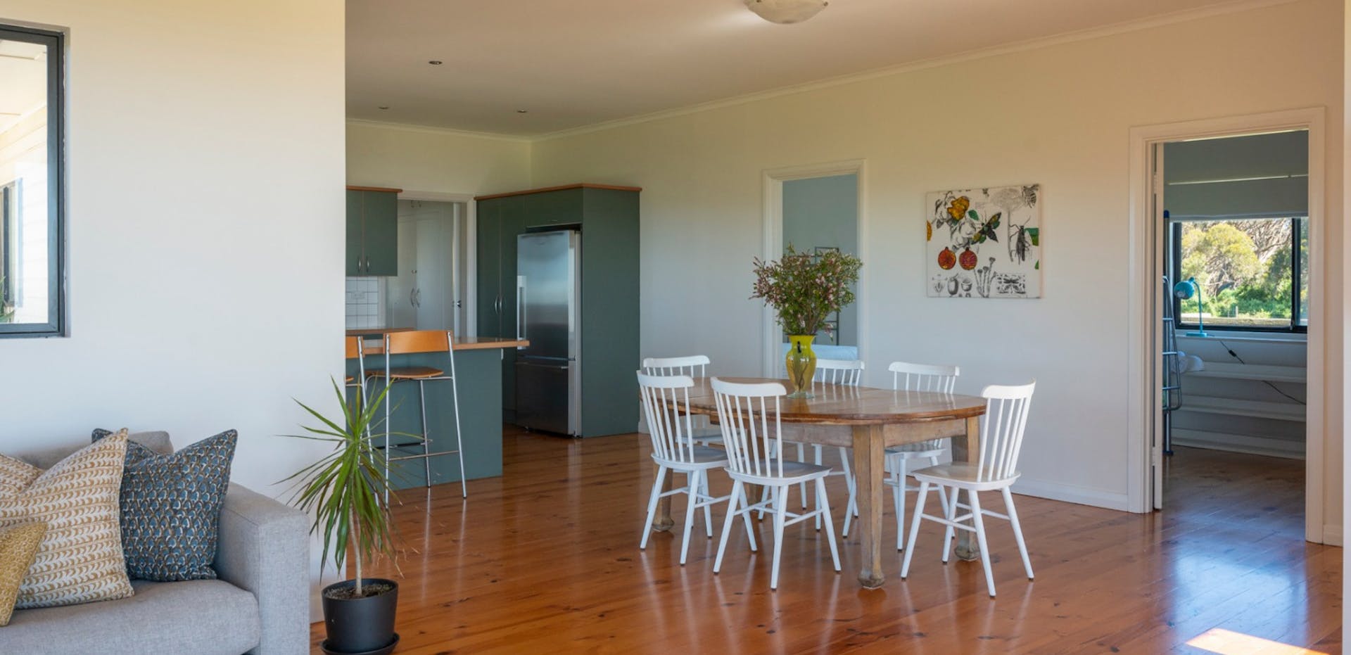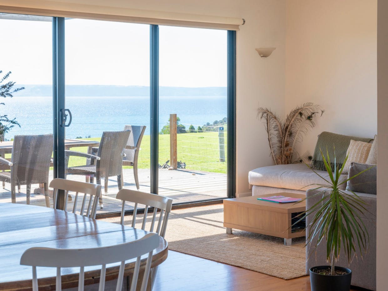 The panoramic views from this light-filled farm house capture the essence of Creek Bay: a foreground of pastoral splendour with grazing sheep and rolling pasture