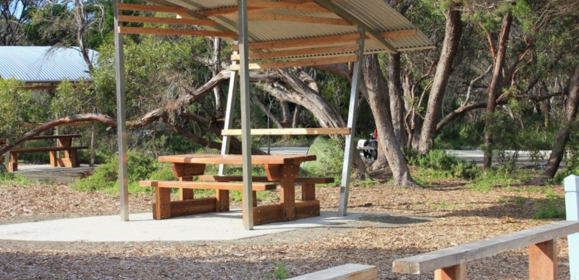 The camping ground is situated adjacent Brown Beach, a secluded area adjoining the Hog Bay Road.