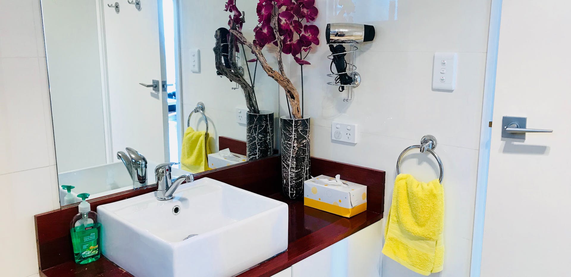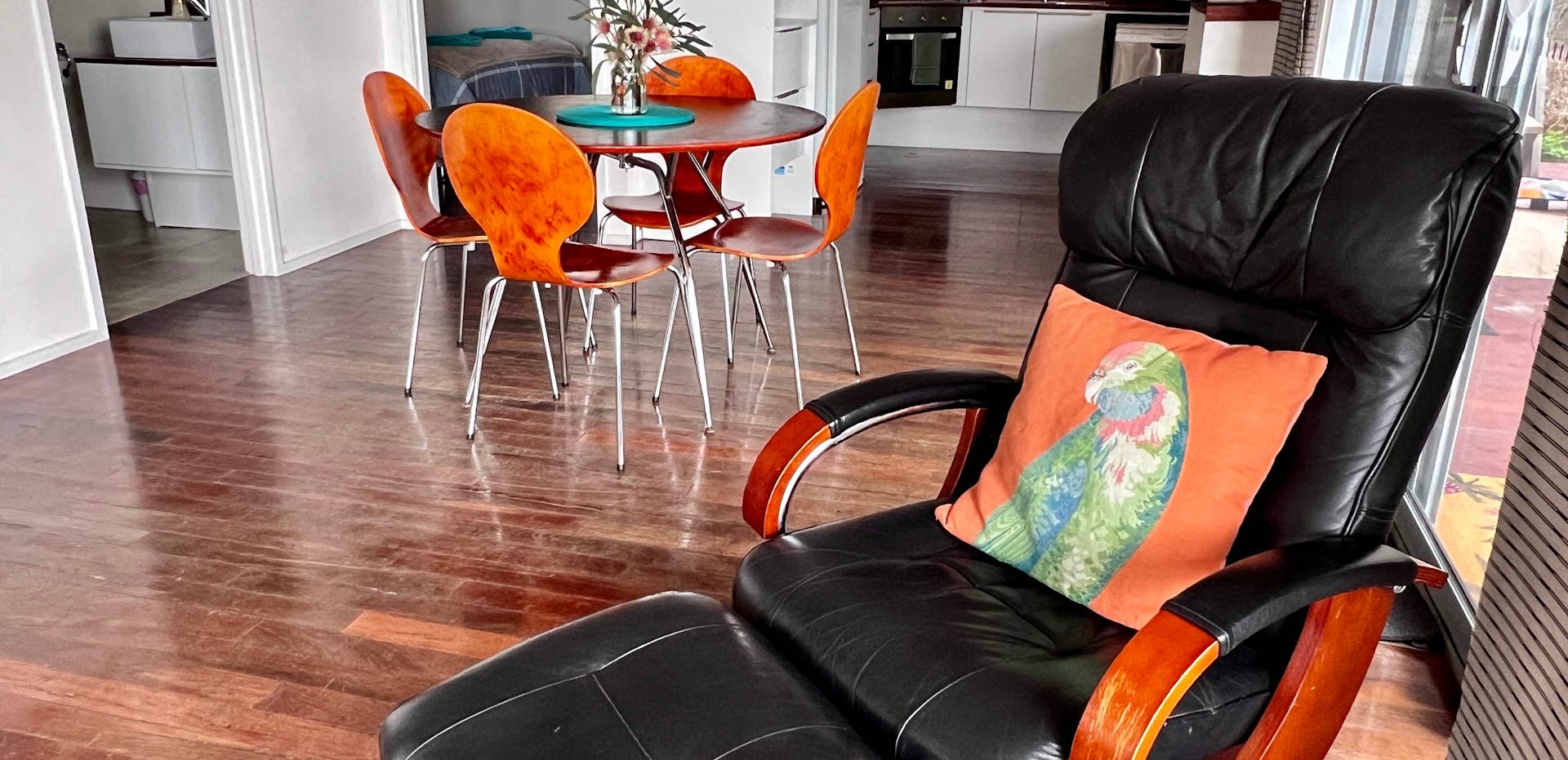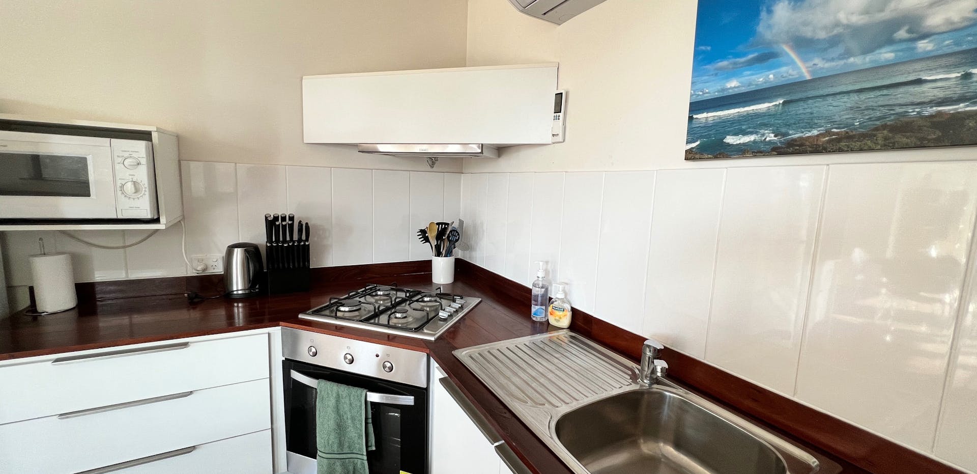 Horizon Apartment is a self-contained apartment with sea and bushland views. They have two bedrooms and one bathroom with a bath.