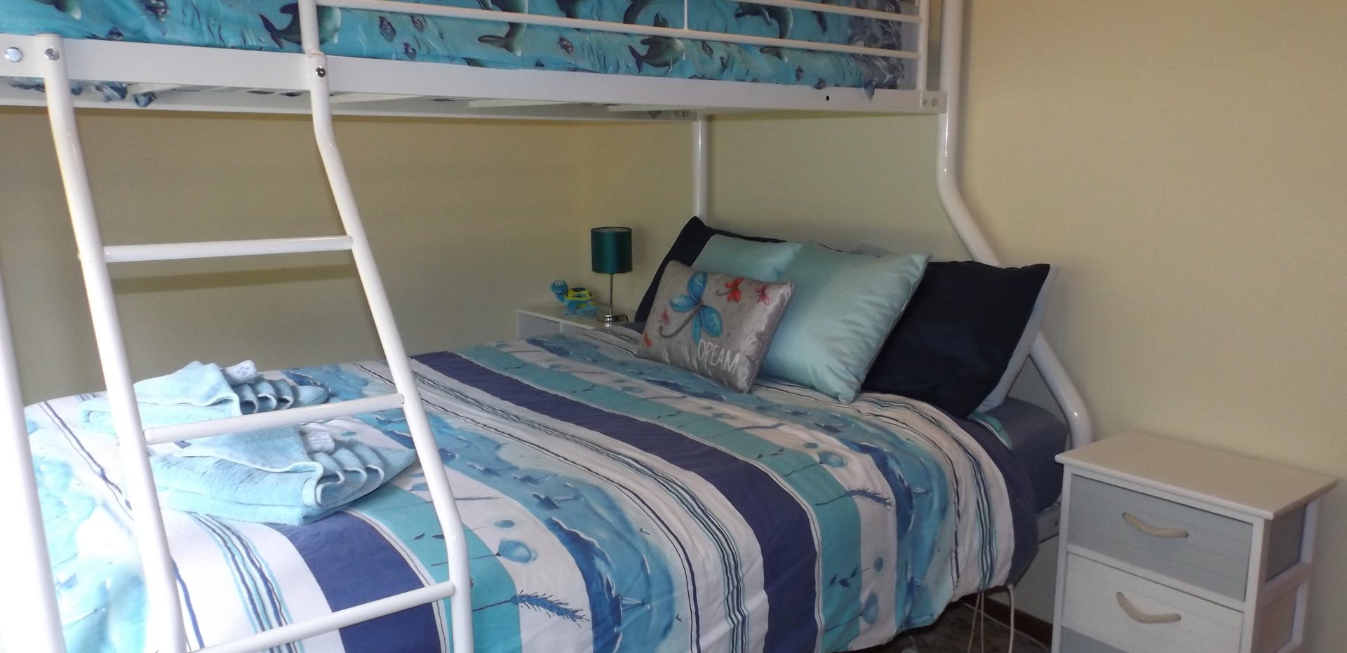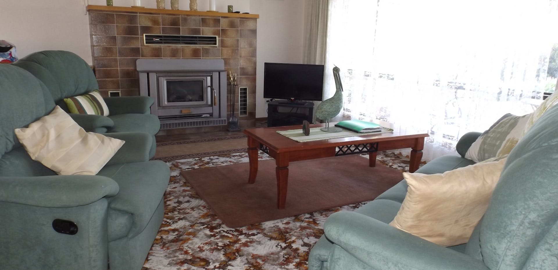 The house sleeps up to seven people. The first bedroom has a queen bed, the second has one queen bed and the third has one double with one bunk bed above. Cot is available by request. Bed linen and towels are provided, and the bathroom has a separate shower and bath. There is a separate toilet. The laundry has a washer and dryer. The newly renovated kitchen is fully outfitted. The house has reverse-cycle air-conditioning and heating, fan, slow combustion wood heater and portable heaters and coolers. There is an undercover outside BBQ and entertainment area in the back and a patio with spectacular views in the front. The back garden has fruit trees that you are welcome to pick in season. Free offroad, on-site parking for cars and boat.