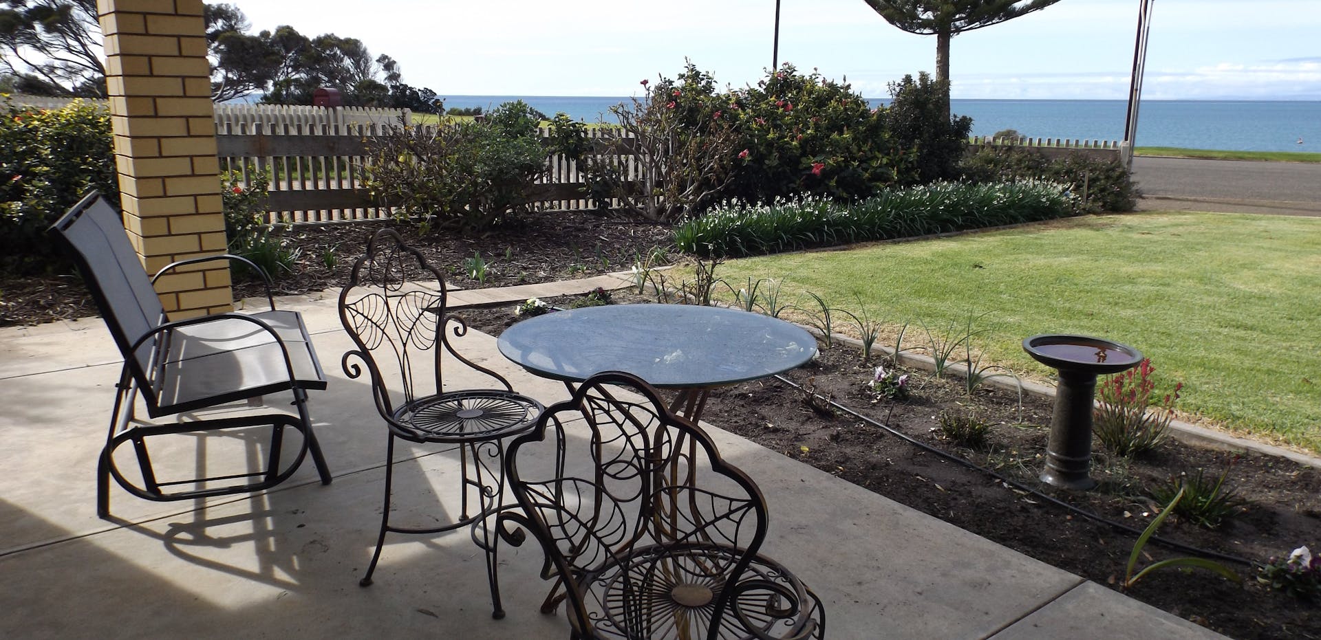 Kirazz Esplanade at 21 Esplanade, Kingscote, Kangaroo Island is a three bedroom fully self-contained house. It is situated on a seafront cliff top, overlooking Kingscote's boat harbour with uninterrupted views of Back Stairs Passage and beyond.