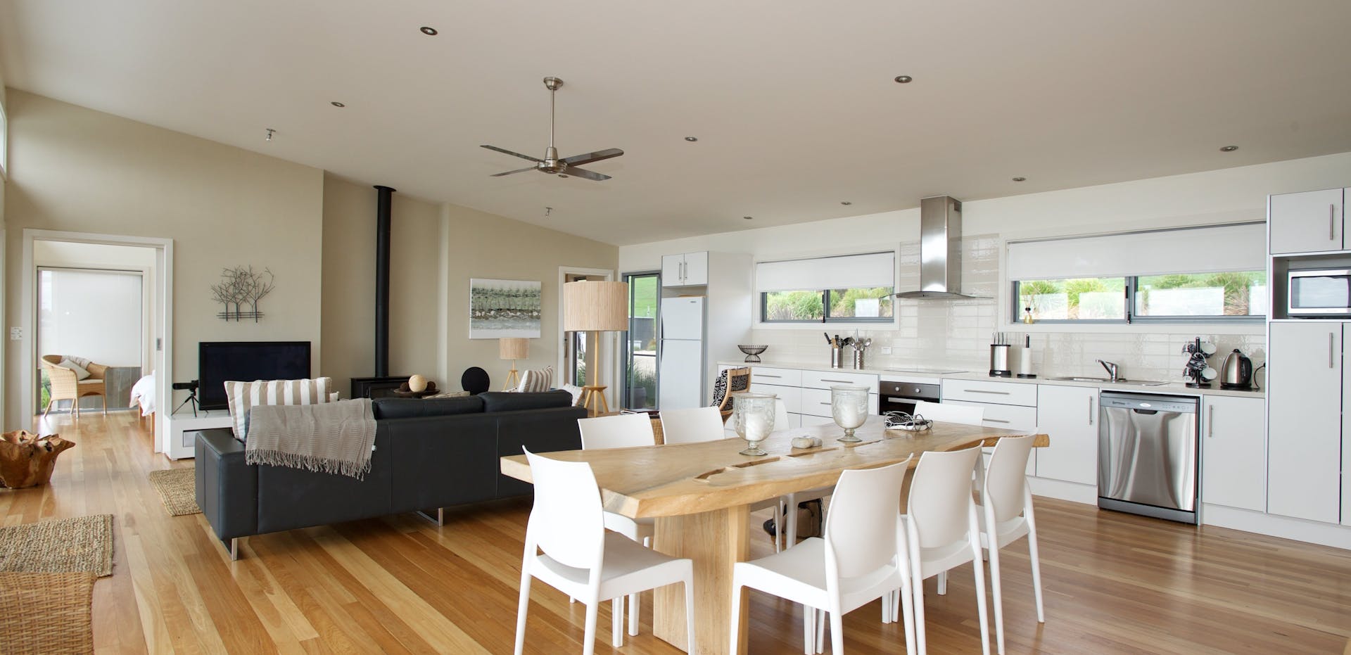 Snellings View is available as shared accommodation for 12 or as private facilities for two to six. Each luxurious home contains a queen size master bedroom with ensuite and a second bedroom with queen size bed, trundle bed (which can be converted to a queen bed) and private ensuite.