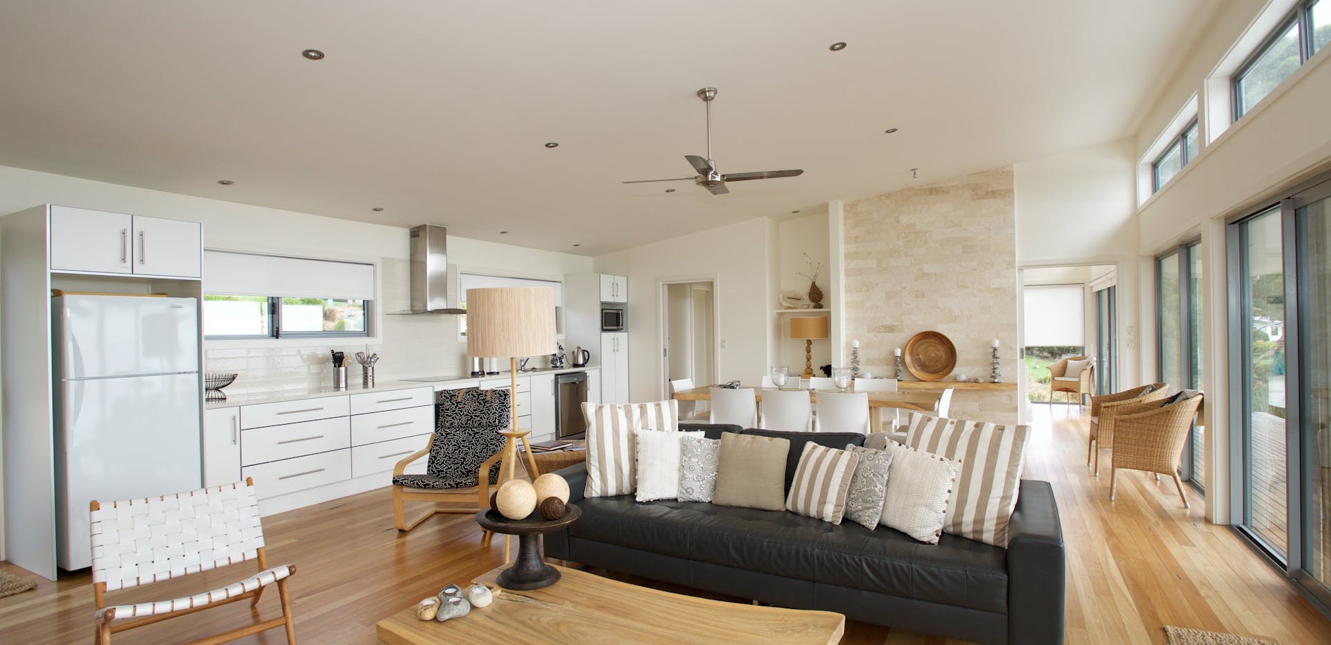 Holiday HousesBeachcomber is a modern beachfront home with sweeping sea views and spacious sun deck with outdoor dining suite. -