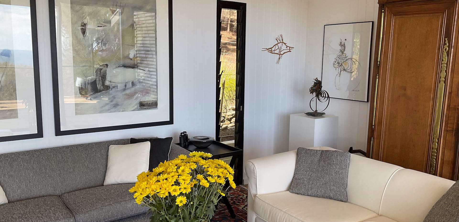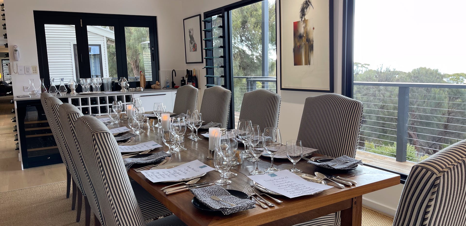 The property is located on three acres on the hill looking down over the town and harbour of Penneshaw. The house has recently undergone extensive enlargement and renovations. It is light and bright with large north facing windows that provide an expansive view of the ocean, township and countryside. The property is furnished with high quality furniture and artworks but maintains a relaxed and comfortable seaside ambience.