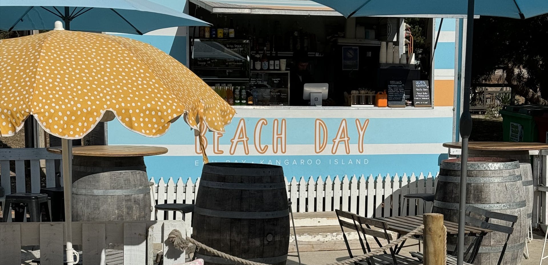 Beachside cafe and licensed bar at Emu Bay on Kangaroo Island. Serving coffee, hot food, ice cream, cocktails, local beers and wines, ice cold drinks